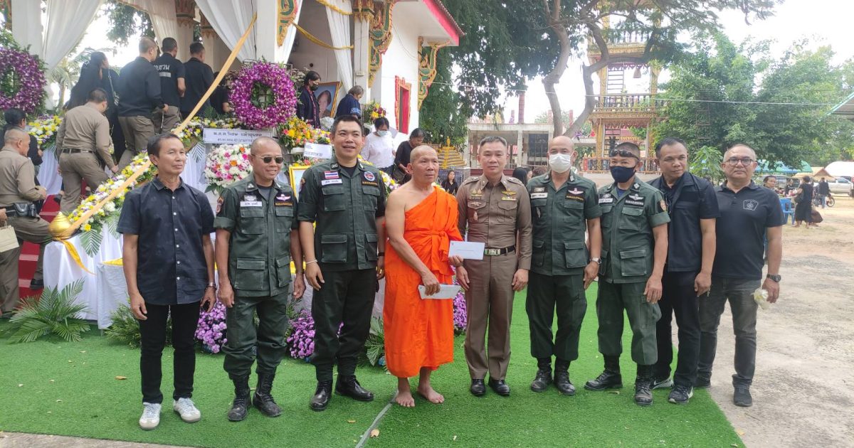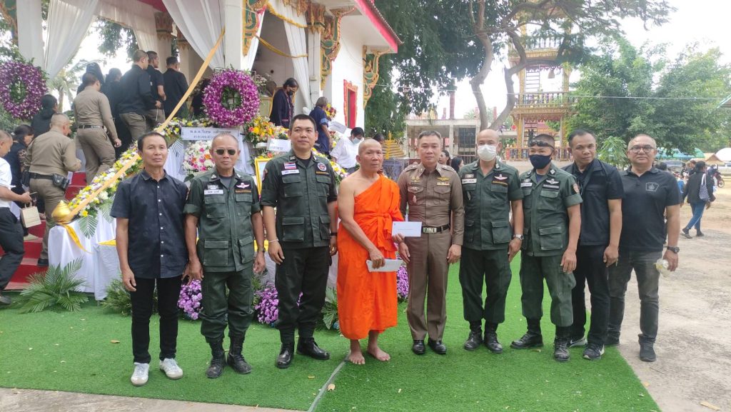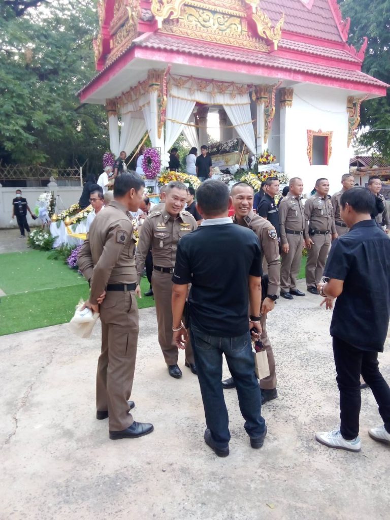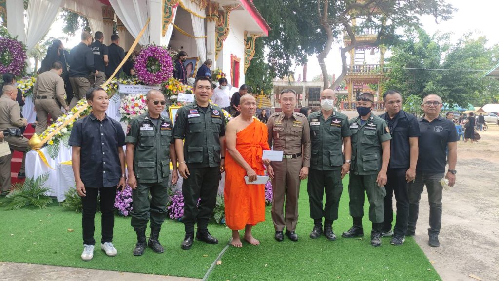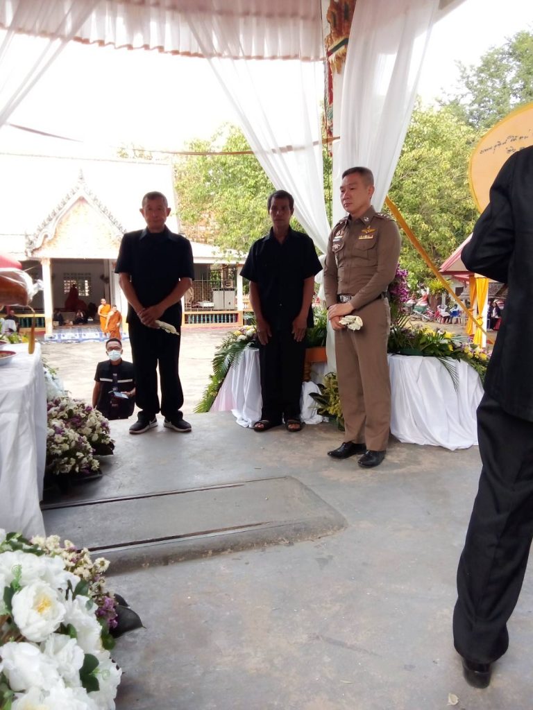 พ.ต.อ.สุเมธ พิทักษ์เกียรติยศ ผกก.กก.สืบสวน ภ.จว.มหาสารคาม พร้อมด้วย ข้าราชการ กก.สืบสวนฯ ร่วมพิธีฌาปนกิจ นางสวย จันทร์เรือง มารดาของ ร.ต.ท.บัณฑิตย์ จันทร์เรือง รอง สว.กก.สส.ภ.จว.มหาสารคาม