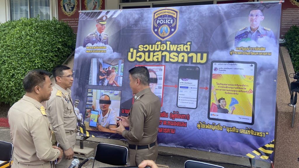 🔸ร่วมกันแถลงข่าวการจับกุม รวบมือโพสต์ป่วนสารคาม กรณีมีผู้ใช้ Facebook ใช้ชื่อว่า “นุรดีน เสน่ห์จันทรา” ทำการโพสต์ในเชิงแกล้งบอกเล่าความเท็จให้เลื่องลือ จนเป็นเหตุให้ประชาชนตื่นตกใจ และนำเข้าสู่ระบบคอมพิวเตอร์ซึ่งข้อมูลคอมพิวเตอร์อันเป็นเท็จ โดยประการที่น่าจะเกิดความเสียหายต่อการรักษาความมั่นคงประเทศ ความปลอดภัยสาธารณะ ความมั่นคงในทางเศรษฐกิจของประเทศ หรือโครงสร้างพื้นฐานอันเป็นปะโยชน์สาธารณะของประเทศหรือก่อให้เกิดความตื่นตระหนกแก่ประชาชน