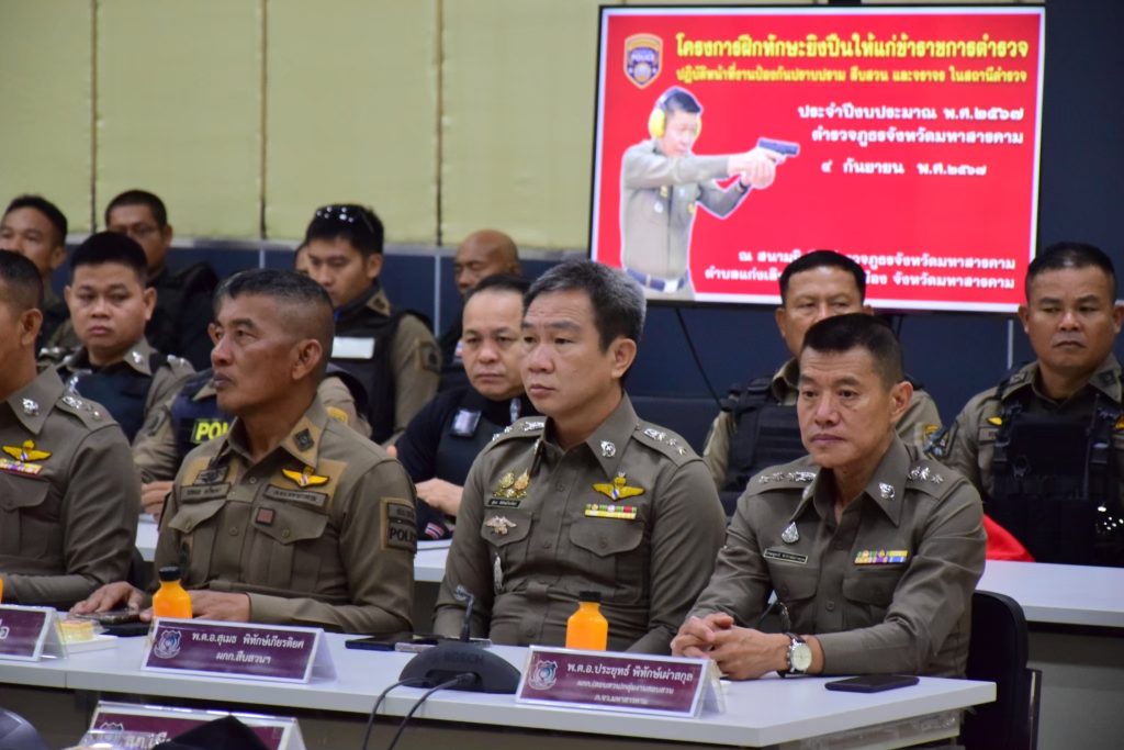 โครงการฝึกทักษะยิงปืนให้แก่ข้าราชการตำรวจ ปฏิบัติหน้าที่งานป้องกันปราบปราม สืบสวน จราจร ในสถานีตำรวจ ในสังกัดตำรวจภุธรจังหวัดมหาสารคาม