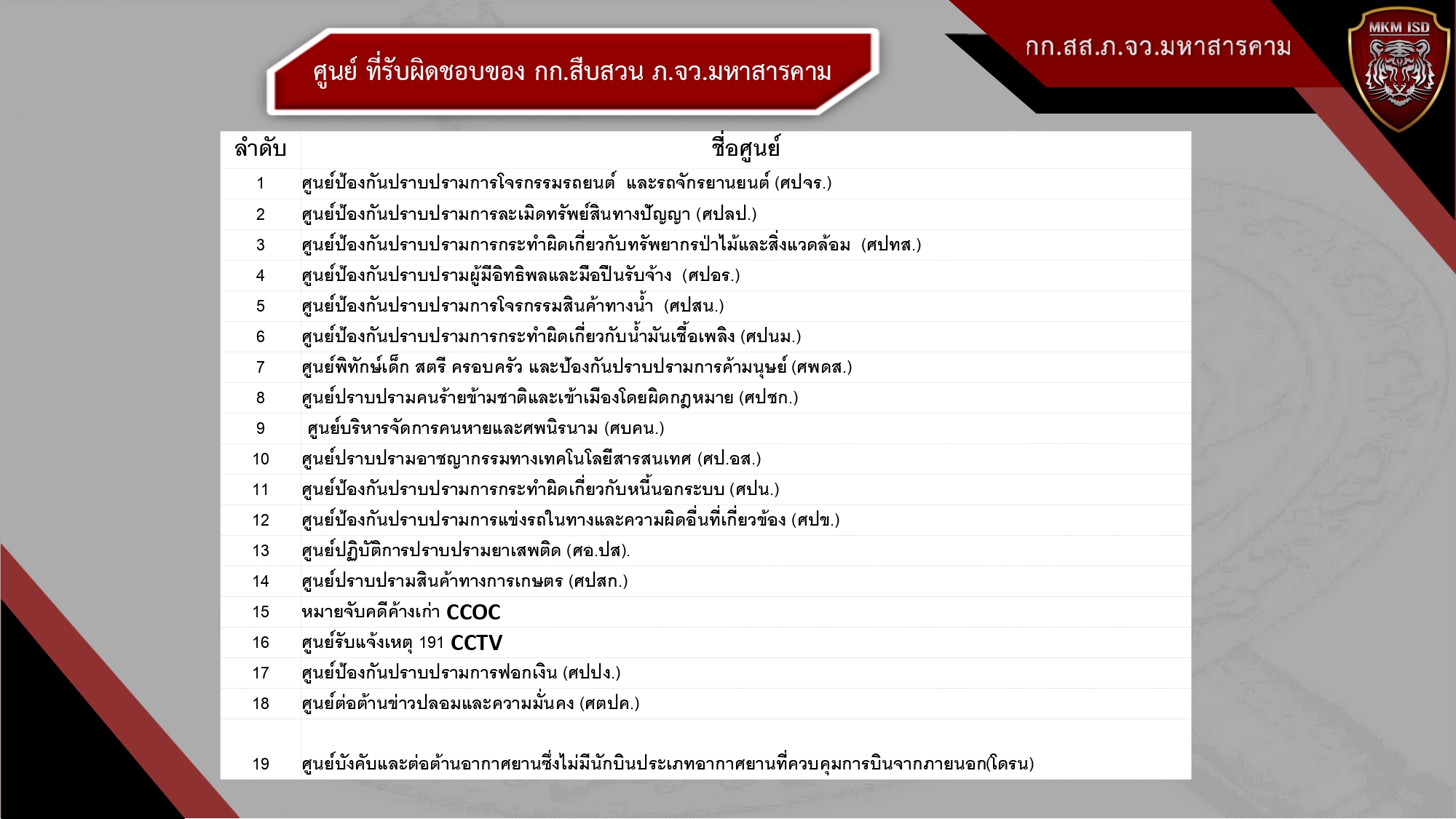 ๑๔) เป็นศูนย์รับแจ้งข้อมูล เหตุด่วน เหตุร้าย