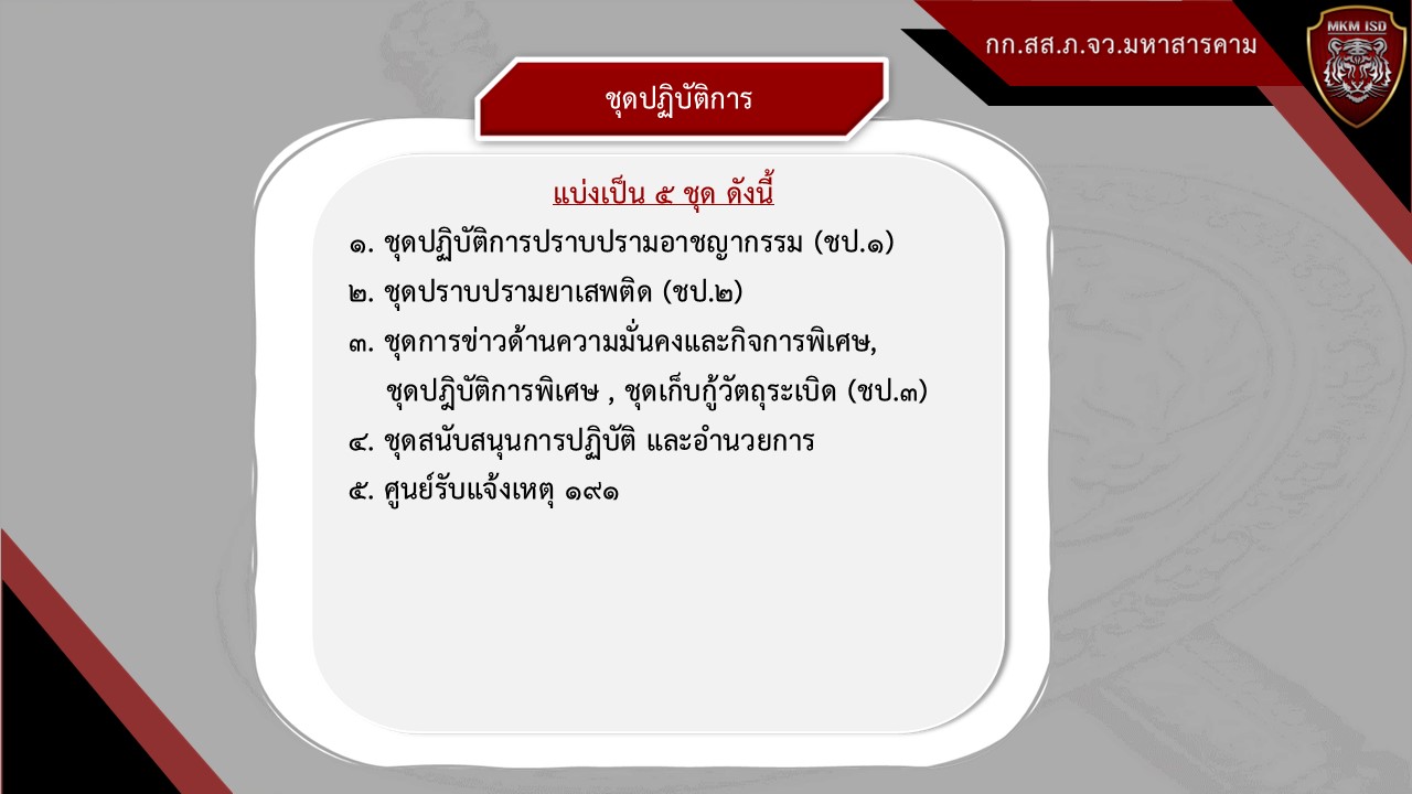 ๖) ดำเนินการและสนับสนุนช่วยเหลือสถานีตำรวจท้องที่ในการป้องกันและปราบปราม อาชญากรรม การก่อความไม่สงบ การจลาจล การก่อการร้ายในรูปแบบต่าง ๆ การควบคุมฝูงชน และการเจรจา ต่อรอง